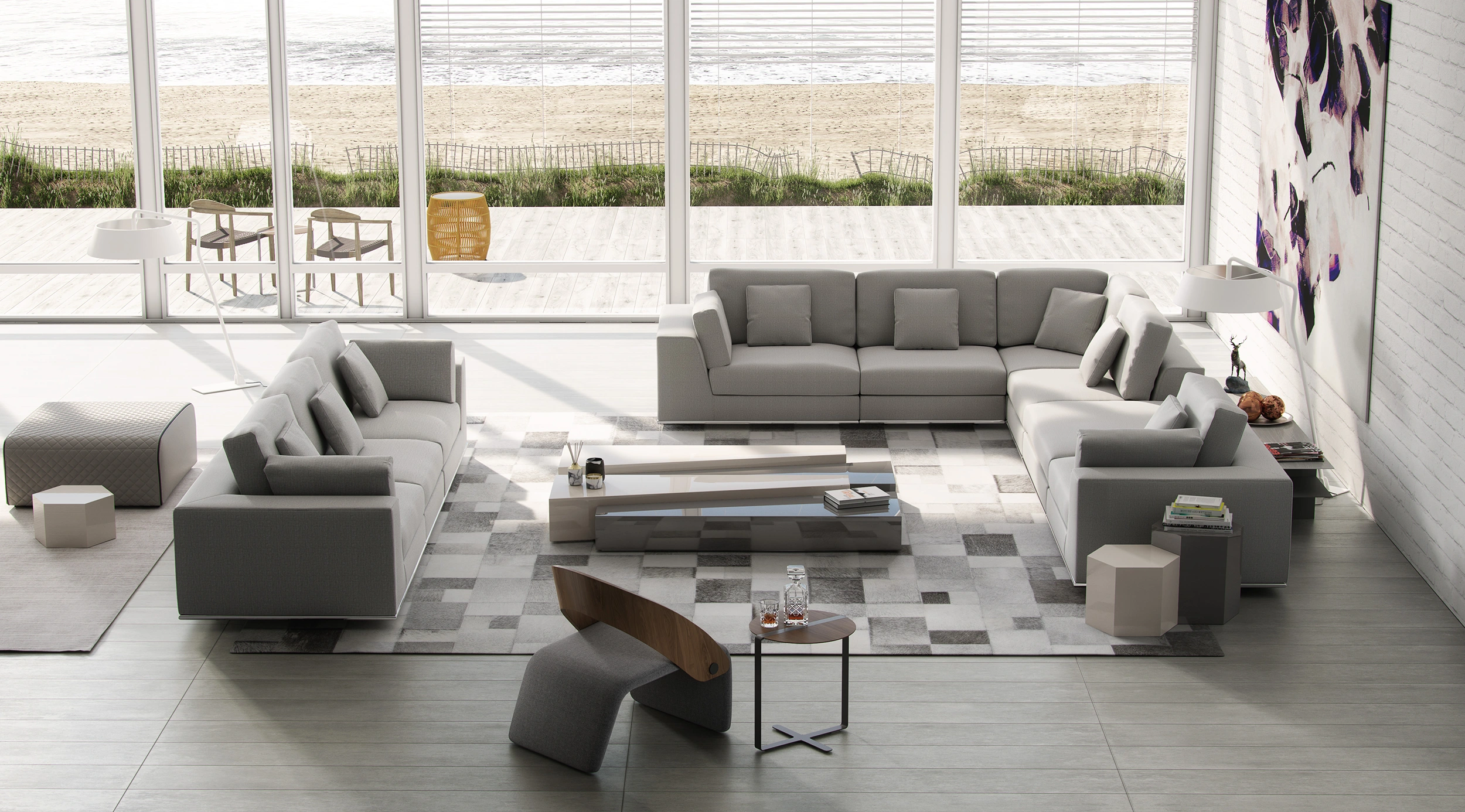 Lucerne Sectional Sofa - Set 01 (Ashen Fabric)