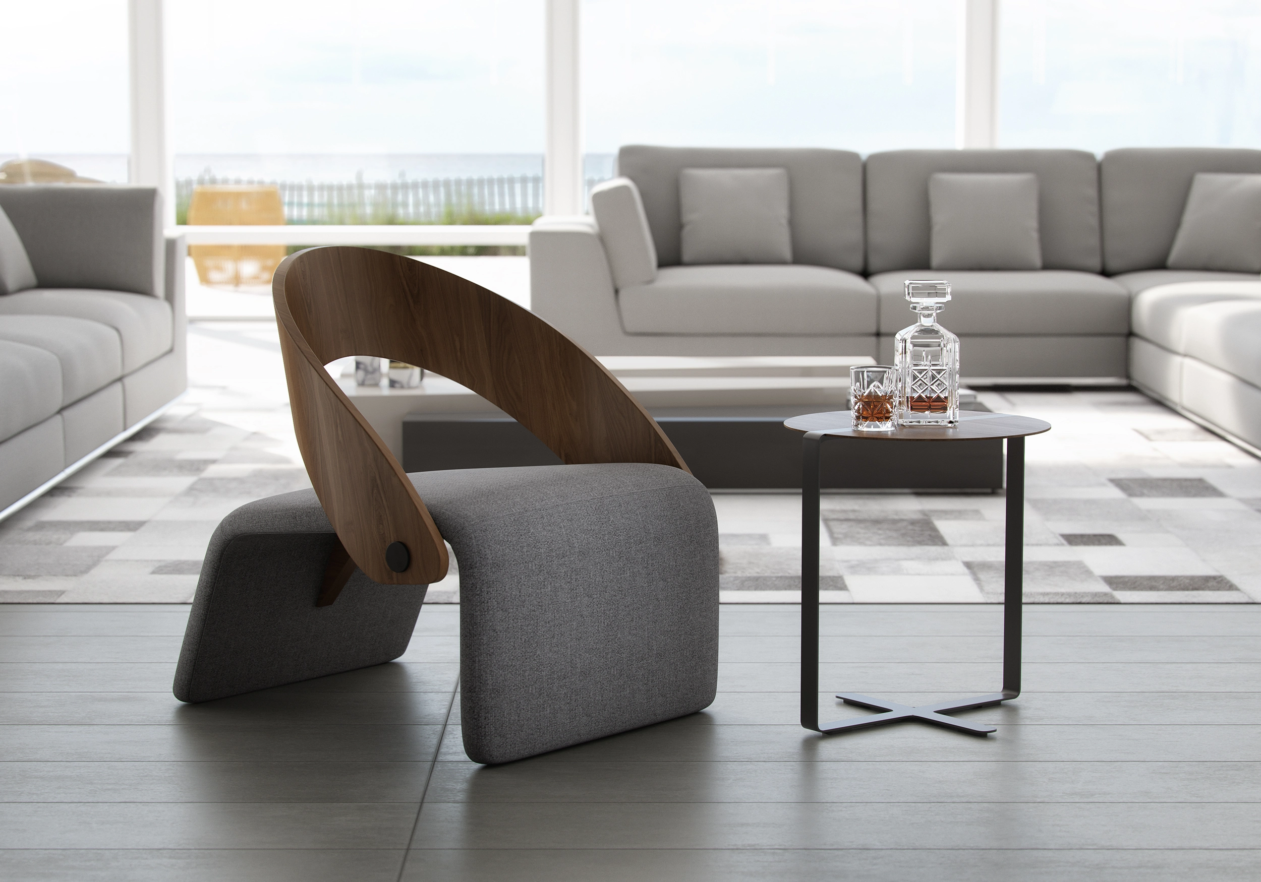Clifton Lounge Chair (Peppercorn Fabric)